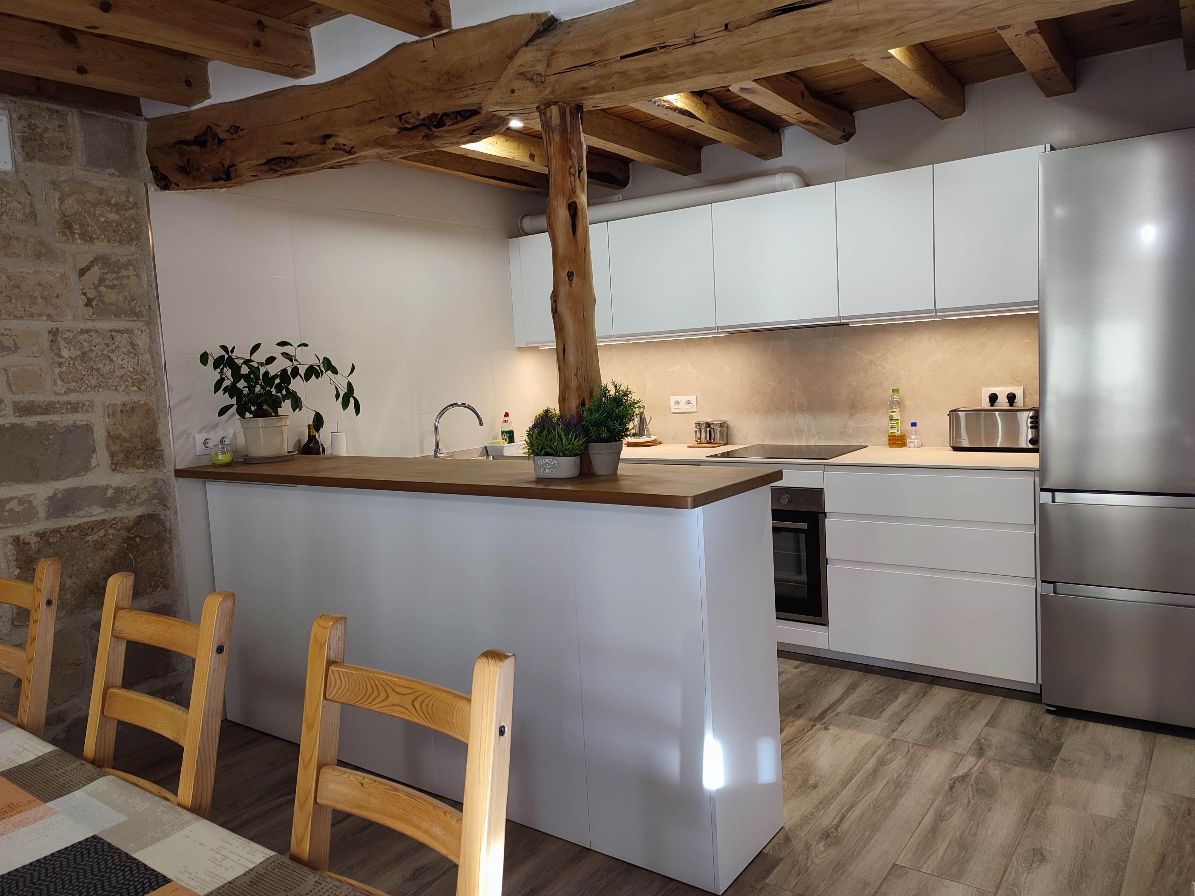 Las cocinas están equipadas con electrodomésticos (frigorífico, placa de inducción, horno, microondas, lavavajillas y lavadora; esta última sólo en la planta baja). También disponen de tostadora, cafetera y menaje completo.
